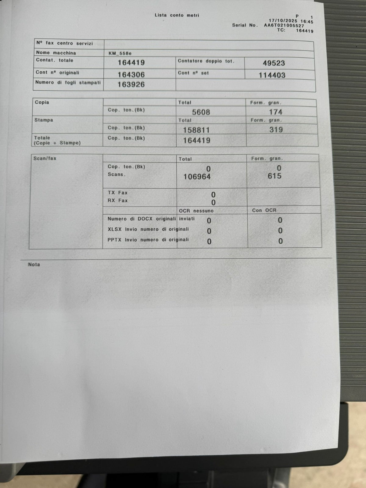 La stampante è usata e ricondizionata con solo 54500 copie viene fornita con un Toner Nuovo, perfettamente funzionante e testata. Può presentare qualche piccolo difetto estetico