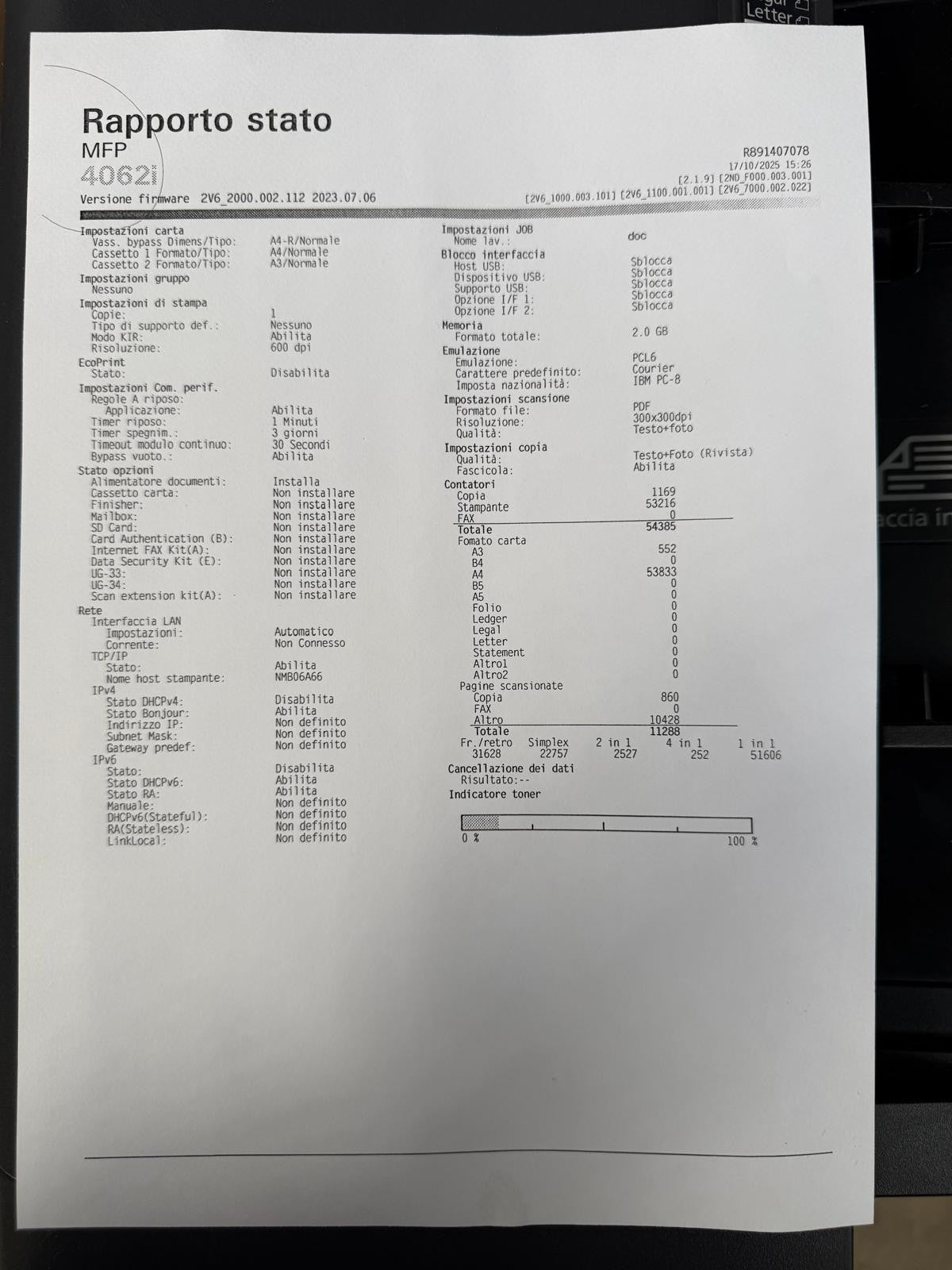 La stampante è usata e ricondizionata con solo 54500 copie viene fornita con un Toner Nuovo, perfettamente funzionante e testata. Può presentare qualche piccolo difetto estetico